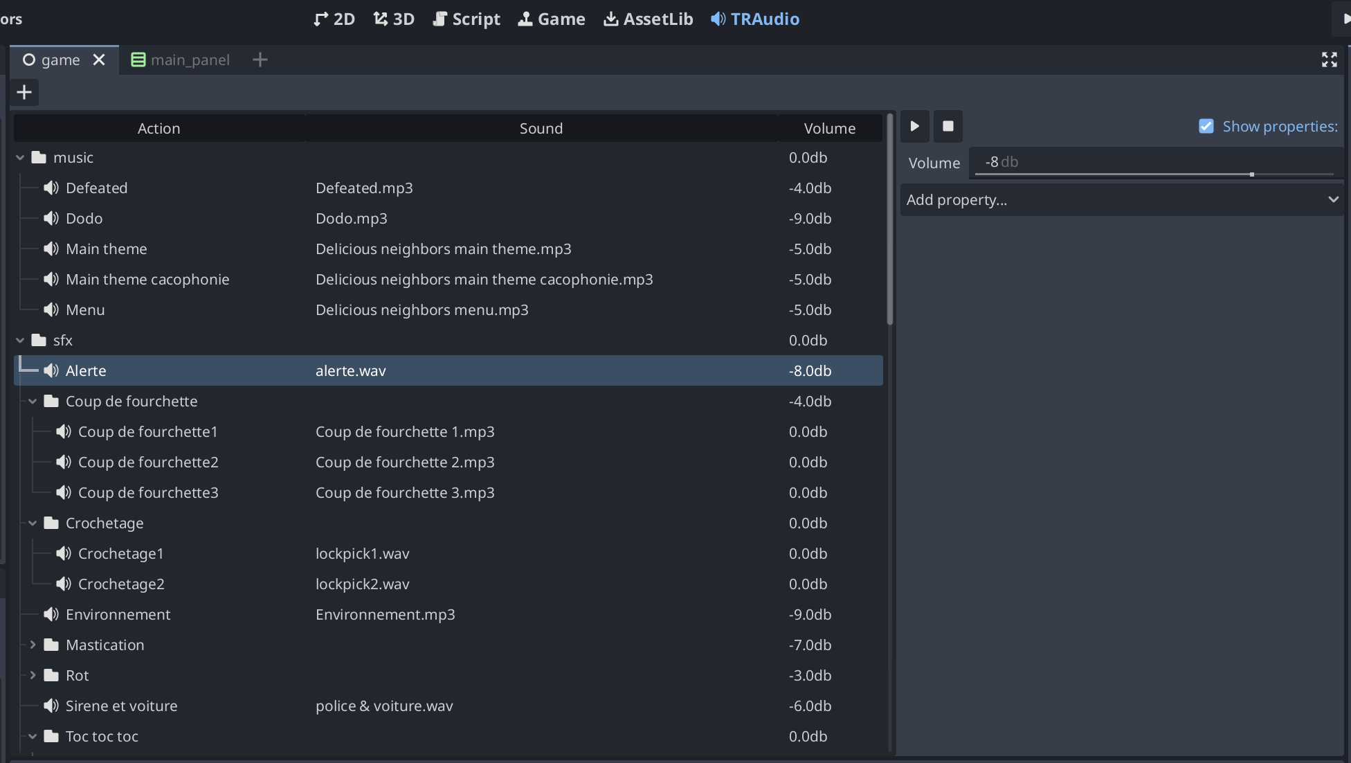 So this is what we used in Little Shadow and Delicious Neighbors, and now we saved a lot of time using all this, it's time for us to share. You will find the TRAudio add-on for Godot on Github, under the MIT License. Please don't hesitate to contact us if you need help using it (it's the very first version, and documentation is probably not as complete as it could).