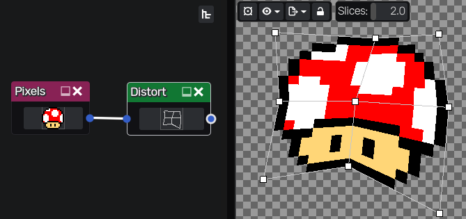 - A new Lattice parameter type and a new Distort node have been added. It can be used to apply a grid based distortion to its input.